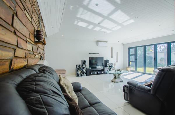 The Living area is a spacious sunny room with an Air conditioner, Fireplace and