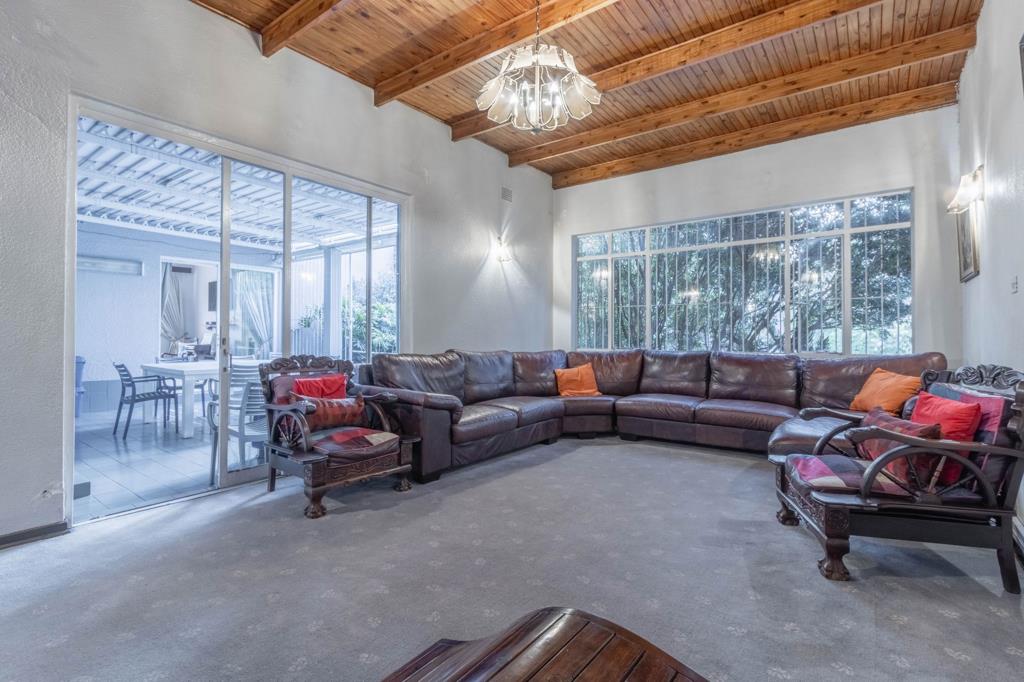Sunken, carpeted lounge seamlessly connected to the dining area, offering a warm and inviting space for family gatherings and entertaining guests.