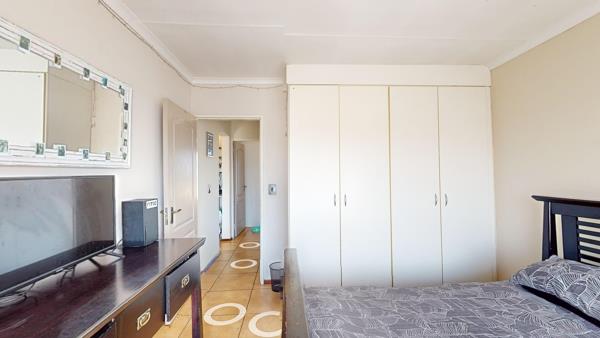 This pristine 2-bedroom, 1-bathroom apartment is located within a secure complex in Parklands Estate. It features an open-plan lounge, dining, and kitchen area that extends to a balcony. The hallway includes a spacious cupboard for additional groceries or linens. Both bedrooms have built-in cupboards, with the master bedroom containing a safe and access to the balcony for relaxation. The modern, recently renovated bathroom includes a shower, basin, and toilet.