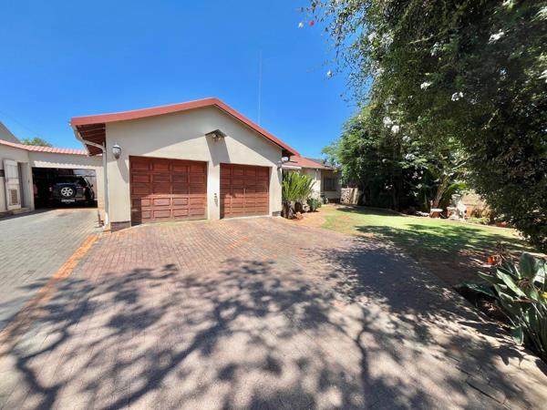 Car enthusiasts or families will appreciate the double garage with motorized doors providing direct entrance to the house, as well as an adjacent carport and open parking options. The level, neat, and established garden is enclosed by 1.8-meter walls, ensuring privacy and security.
