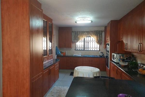 Downstairs: A grand lounge welcomes you, complemented by a foyer featuring a staircase with ample storage underneath, a tiled study, and a guest toilet for added convenience. Enjoy gatherings in the open plan dining room where a tiled sun room awaits with a new built-in braai and expansive windows overlooking the garden, perfect for relaxation. The open plan kitchen is a chefs dream with abundant cupboards, double eye level oven, granite tops, breakfast counter, and a separate scullery. All downstairs ceilings are adorned with gamazine finishes, adding a touch of elegance.