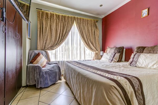 Outside, the property truly shines with a refreshing swimming pool, perfect for enjoying South African summers.
