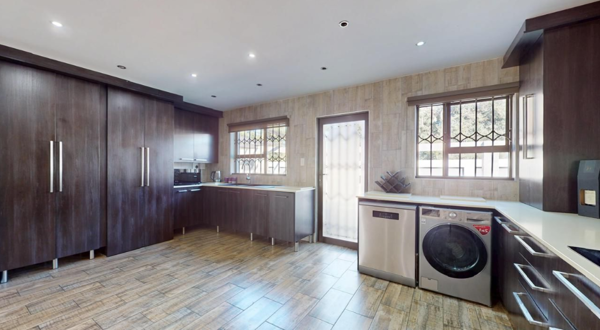 Situated in a secure, semi-enclosed enclave of Parkrand. Close to major highways and excellent schools. Four spacious bedrooms, includes a master en-suite and three bathrooms with expansive open-plan settings, a modern kitchen, dining area with a seamless lounge flow. Light filled living spaces open out onto a spacious entertainment area equipped with built-in braai that overlooks a swimming pool. The double garage can accommodate multiple vehicles, an adjacent workshop provides ample space for a home office or study. A Prime location, low-maintenance and practical design, make this property a perfect blend of comfort, convenience and lifestyle.
