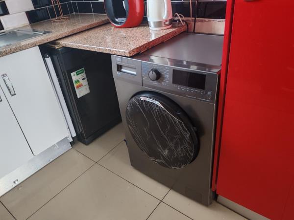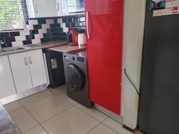 The kitchen is a real highlight, boasting modern red and white cabinetry that adds a pop of colour. You''ll find ample counter space, a built-in gas hob for all your cooking adventures. The stylish black and white tiled backsplash gives it a unique touch.