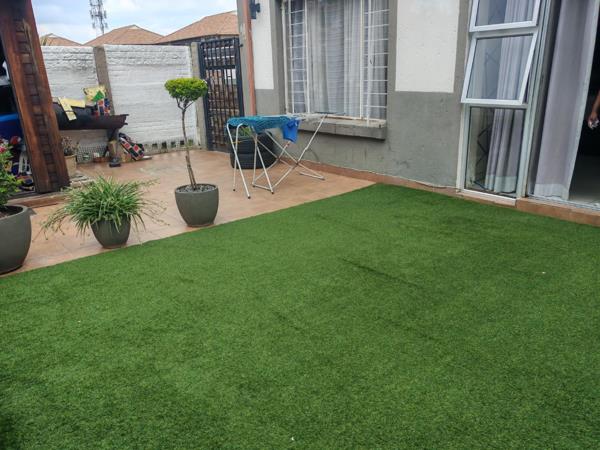 The outdoor area is designed for low maintenance, featuring artificial turf and a tiled patio, perfect for enjoying the South African sunshine without all the fuss. This charming home is nestled in Parkrand, Boksburg, a well-established area offering a convenient suburban lifestyle.