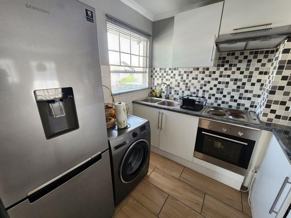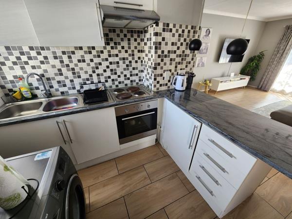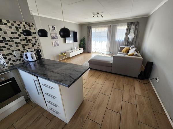 This modern, renovated 2 bedroom, 1 bathroom 1st floor unit is a must see. Tiled throughout, the lounge and kitchen area is open plan with space for Fridge and washing machine. The bathroom has a bath/shower combo and there is plenty of cupboard space in the unit. There is one allocated undercover parking and the complex has 24 hour security, a large playground for the children, 2 communal pools and braai area for your enjoyment and its right next door to an English Primary School.