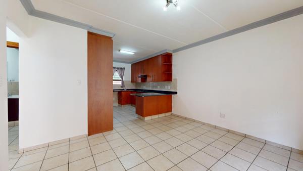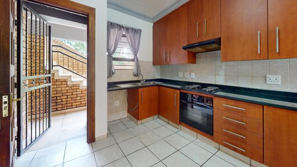 Discover this neat-as-a-pin ground floor unit located in the highly sought-after Ravenswood Mews. The welcoming, practical kitchen features built-in cupboards and tiled flooring. It flows seamlessly into the open-plan lounge, creating a warm and functional living space. Sliding doors lead to a covered porch with a built-in braai, overlooking the well-kept green lawn.