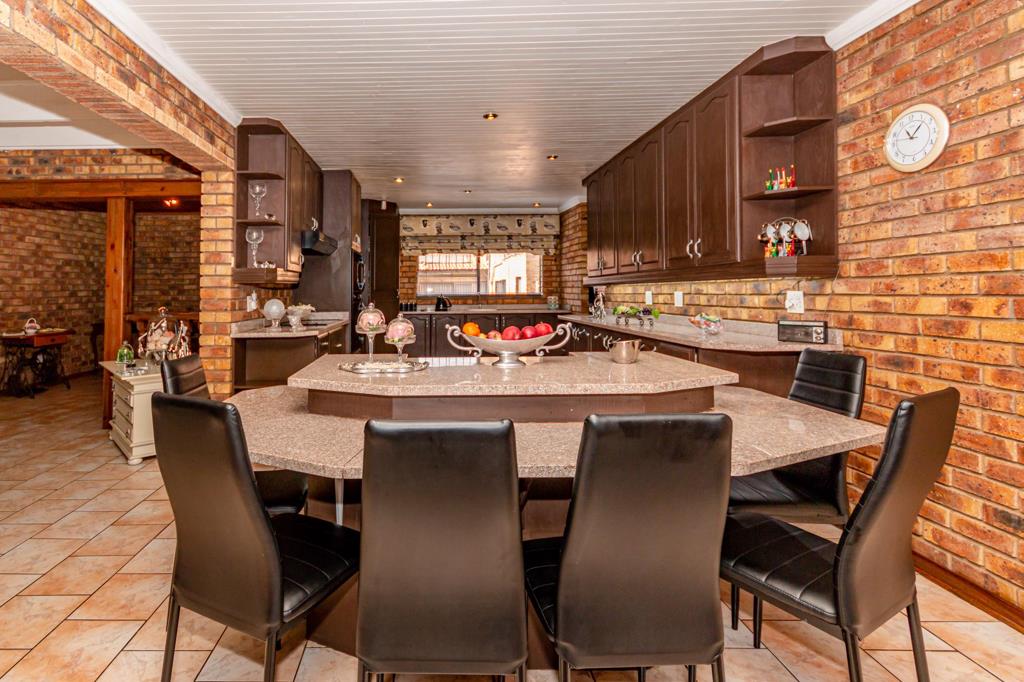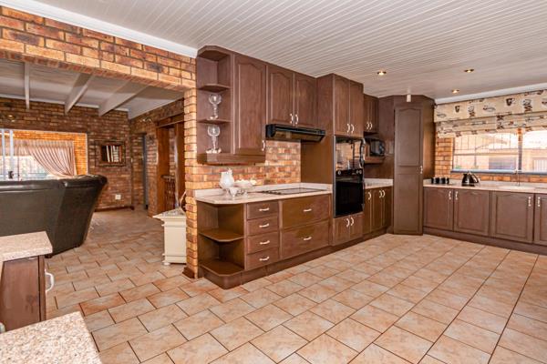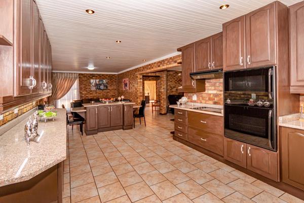 A marbelite pool, well maintained garden and a combination of tiled wooden flooring makes this property completely different from anything around it. Beautiful finishes are incorporated in every living space throughout. The houses offers an entertainment area with a built-in braai, jacuzzi and enough space for a pool table, six en-suite bedrooms, a walk in closet and a two bedroom guest suite with its own bathroom. Two living spaces ideal for an office or visiting guests, as well as two spare rooms ideal for a study or two. The home offers two separate garages one that can accommodate five cars and the other can fit three cars. Solar or electric geysers, CCTV cameras, electric fencing and beams are all part of the offering. With easy living and an entertainers dream, what more could you ask for. My description cannot do this property justice... a must see!!!!!