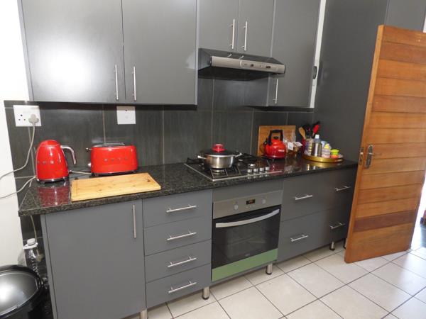 Large, very modern kitchen, which is finished in granite and has plenty of cupboards and place for 2 appliances.