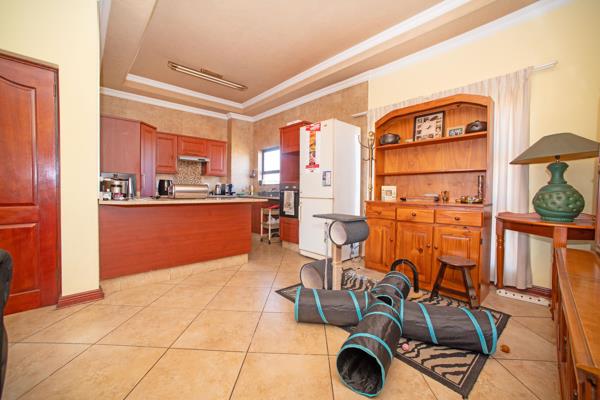 Step into a spacious open-plan lounge that flows effortlessly into a modern kitchen, complete with gas stove, electric oven, extractor fan, and ample counter space.