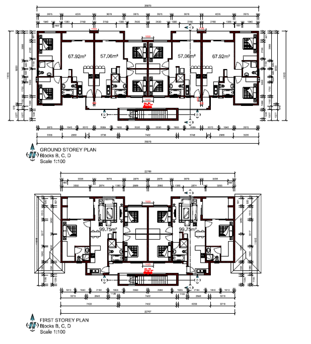 Plans for 128 sectional title units (2 & 3 beds, 60100m2)