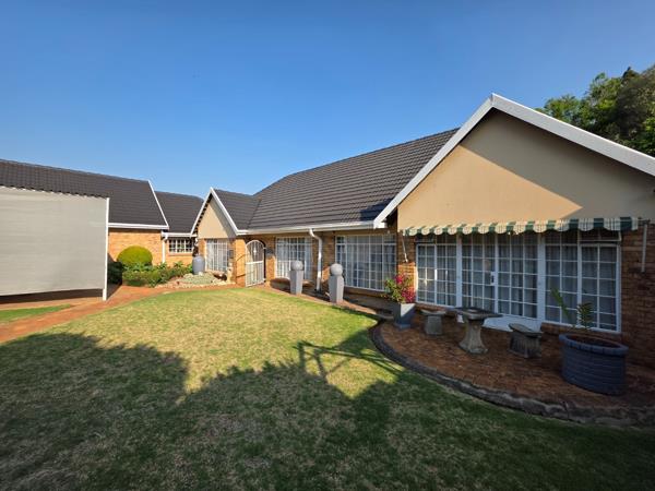 Discover this inviting family residence situated within a secure gated community in the sought-after suburban area of Sunward Park, Boksburg. Boasting a well-maintained brick exterior and a durable tiled roof, the property presents a welcoming kerb appeal, complemented by a manicured front lawn and a paved patio with an awning, perfect for enjoying the outdoors.