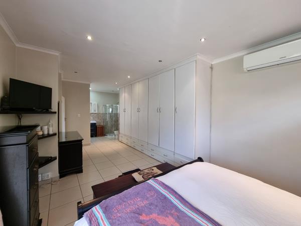 Four opulent bedrooms provide private sanctuaries, including two lavish en-suites, each meticulously designed for comfort and tranquility. Extensive built-in wardrobes offer ample storage, while three full bathrooms and a convenient guest toilet cater to every need. Air conditioning units in key areas ensure year-round comfort, elevating the living experience.