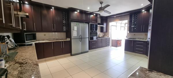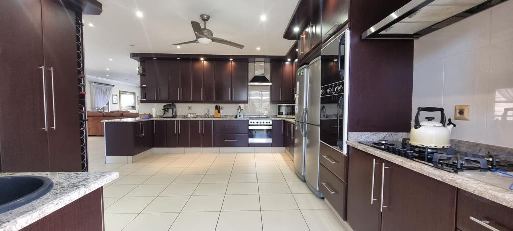This lovely open-plan home offers the ideal mix of comfort, space, and modern living. Step inside to a light-filled lounge and dining area that flows into an enclosed entertainment space with a built-in braai and bar perfect for relaxed family gatherings. The modern kitchen features granite countertops, ample cupboard space, a gas hob, double ovens, and a separate glass-walled scullery that adds a touch of charm.