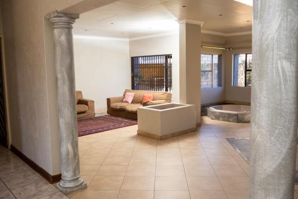 The property has 3 spacious bedrooms all with fitted cupboards, modern kitchen with fitted stove, oven and hob. It boasts 3 bathrooms, study, gym room and flatlet. The garages fit 6 cars and the garden is very beautiful.