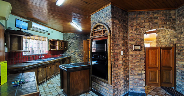 Located in a semi-boomed area, close to highway access , shops and schools. Perfect for entertaining, the property features an upstairs mancave with a pool table, a built-in bar, a fire room, and a fully tiled indoor heated swimming pool. The entrance opens to a gracious formal lounge with a traditional fireplace, which in turn extends to an expansive TV/family room boasting an anthracite fireplace and sliding doors that open onto the lush garden a space designed for relaxation and connection. With spacious bedrooms which are tiled and have fitted cupboards. The main bedroom has a ensuit bathroom with double basin, toilet bath and shower. The 2nd bathroom that services the other bedrooms offers a bath, single basin and separate toilet. There is a possible 4th bedroom or office area. Includes full domestic quarters, a built-in Wendy house, and a built-in dog kennel. A rustic solid wooden kitchen, dining room, scullery, formal lounge, office/extra room and a data server for the surveillance system, which will remain. Spacious, air-conditioned rooms and ample storage throughout this esceptional and cosy home.