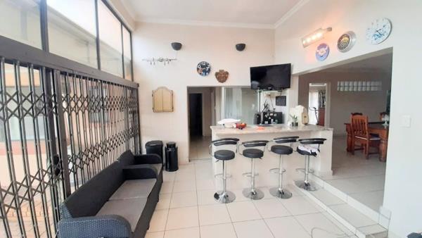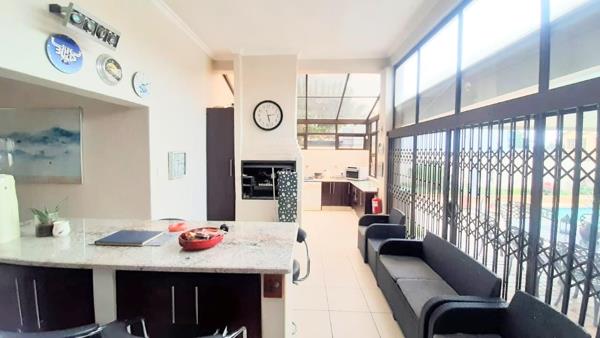 Step into the dedicated entertainment room complete with a built-in braai and bar, ideal for hosting gatherings. This space flows effortlessly to a covered patio, overlooking a beautifully landscaped garden and sparkling pool - a perfect oasis for outdoor enjoyment.