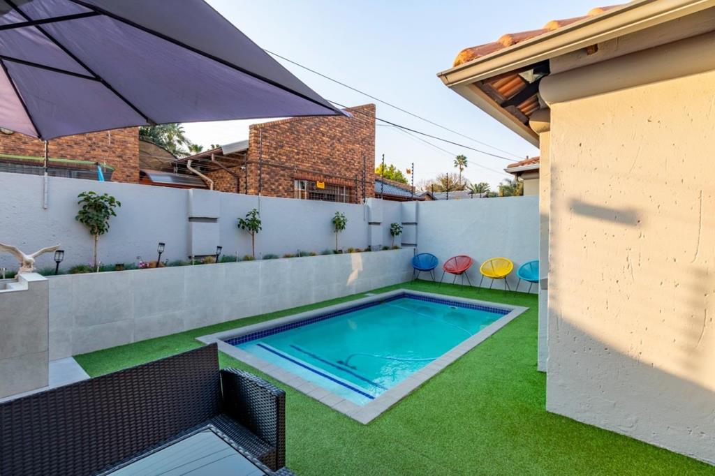 An enclosed patio adds valuable extra living space and works perfectly as an entertainment area, with stacker doors, that opens out to a neat, private garden, with a sparkling splash pool and built-in braai, ideal for entertaining family and friends.