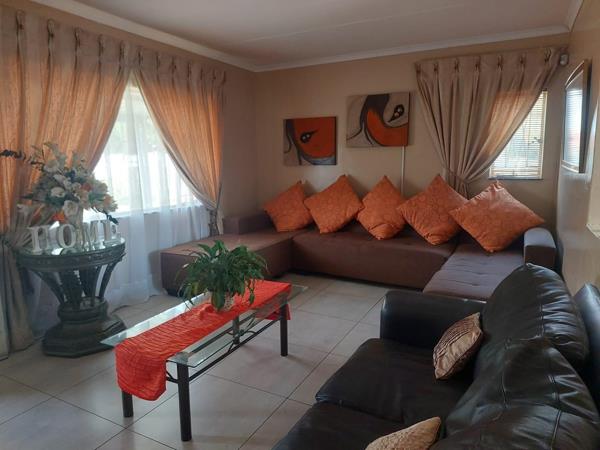 This immaculate 3-bedroom family home boasts built-in cupboards in all bedrooms, and a well-appointed bathroom featuring a shower over the bath. The entire house is elegantly tiled, and the lounge is equipped with an air conditioning unit for your comfort.