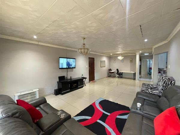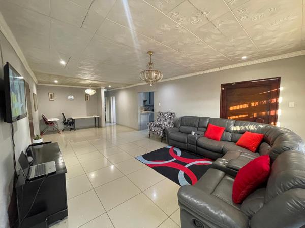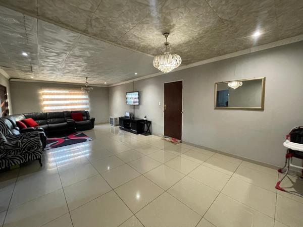 The house is a spacious and luxurious property featuring a large lounge with elegant furnishings and ample natural lights. The adjoining dining room provides an ideal space for entertaining guests and enjoying meals with family.