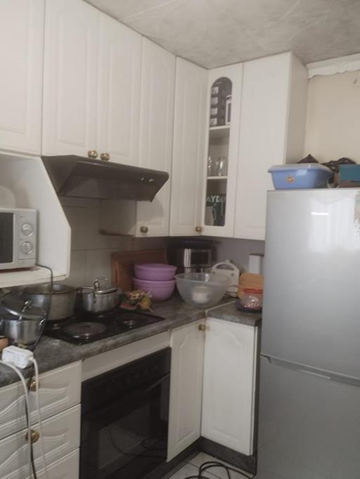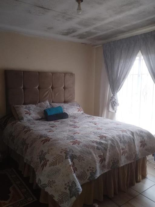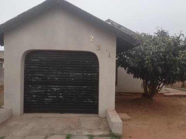 Neat kitchen tiled through out with build-in cupboards with electric stove and extractor fan, 3 bedrooms, 1 bathroom, dining, lounge and 1 garage enough garden space for the extension of the property and prepaid electricity meter.