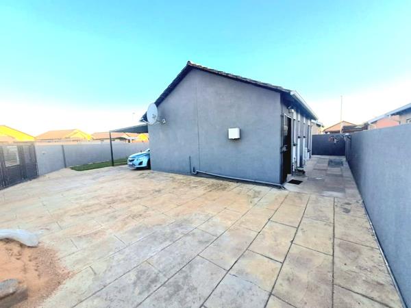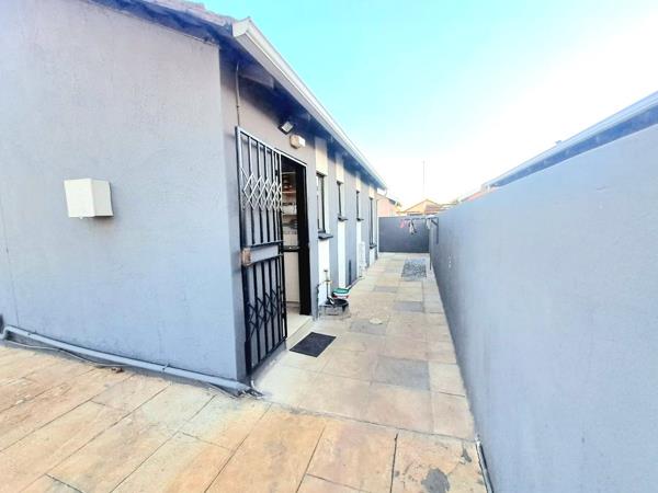 Outside there is a carport for four cars and driveway parking for more than six cars. The area around the house is all paved with a well kept garden and it''s pet friendly. There is a security gate and it is totally walled with burglar bars all around.