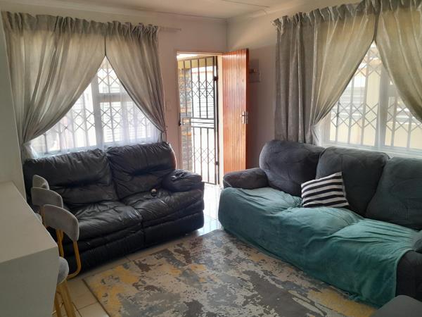 Cozy suburban gem with 3 bedrooms, all fully fitted with built-in cupboards. The main bedroom has an en-suite with a shower. The 2 bathrooms offer convenience for those morning rushes. The kitchen features white cabinets above and below the granite countertops, stove, hob, and oven. Behind the stove, there is a beautiful mosaic tile backsplash, which adds a stylish touch. The kitchen is compact with efficient use of space. This home has beautiful finishes with an open plan living concept for easy maneuvering. There is enough front yard space for your outdoor relaxation or children to play in the yard.