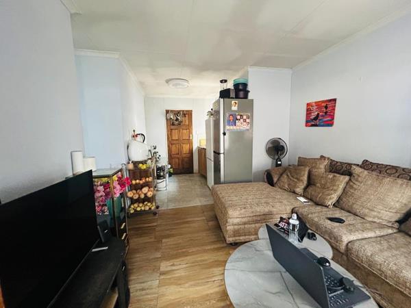 The home welcomes you with a tiled lounge that provides a neat and low-maintenance living space. The open-plan tiled kitchen flows seamlessly into the lounge, creating a warm and practical layout ideal for family interaction and entertaining guests. The finishes are modern and easy to maintain, ensuring both style and convenience.