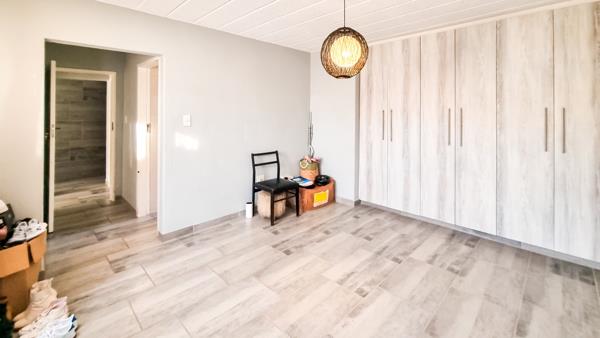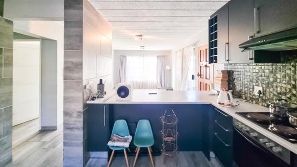 The heart of the home is a sleek open-plan kitchen, fitted with Caesar stone countertops, a convenient breakfast nook, and modern finishes that flow beautifully into a spacious lounge. Slide open the doors to your covered patio with built-in braai, where chilled weekends and sunset dinners await.