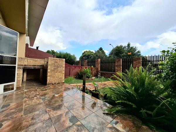 A beautifully tiled patio with a built-in braai sets the scene for effortless entertaining, overlooking a meticulously maintained private garden that truly elevates this home above the rest.