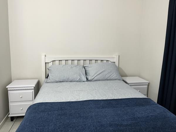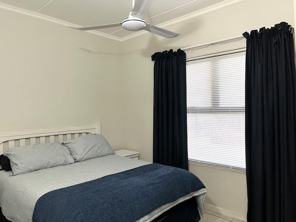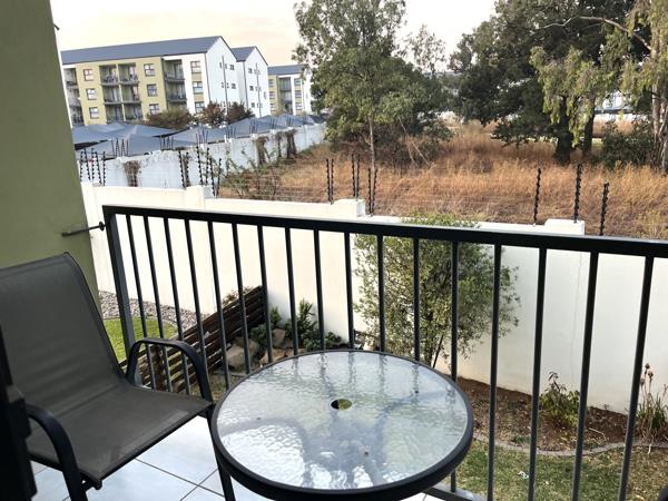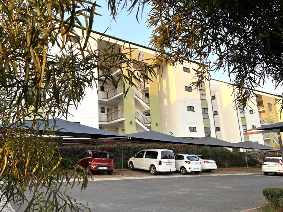 Stunning first floor north-west facing, apartment offers great lock up and go experience. Front door opens into the spacious, open plan kitchen featuring modern lighting, white quartz Caesarstone countertops with space for fridge and under counter washing machine, includes Defy 600 electric countertop hob, under counter oven, extractor fan, curtain rail and built in cupboards with extra storage space above. Lounge is light with sliding door opening onto balcony with vista views over adjacent golf course, perfect for stargazing. Main bedroom incorporates large picture frame window and includes ceiling fan, mirror, blinds, curtain rails and built-in cupboards. Bathroom sports large glass encased shower, medicine cabinet, toilet and basin. Second bedroom enjoys sliding windows and includes mirror, curtain rails and built in cupboards.