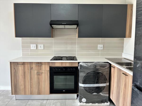 This gorgeous second floor, south-west facing, apartment offers a unique lock up and go experience. Front door welcomes you into spacious open plan kitchen sporting modern lighting and includes white Caesar stone counters, Defy 600 countertop hob, under counter oven, extractor fan, built in cupboards and single sink, plus fridge and washing machine. Lounge is light and features sliding door onto balcony with vista views over complex and gardens. Main bedroom delights with large picture window with vista views, built in cupboards and handy usb port plugs. Second bedroom includes built in cupboards and higher sliding windows for extra privacy. Bathroom enjoys large glass encased shower, toilet, wall hung basin and medicine cabinet.