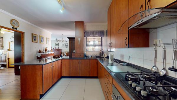 The kitchen is a chefs dream, fitted with granite countertops, a gas stove, and a breakfast nook. A separate laundry and scullery area ensure added convenience and functionality.