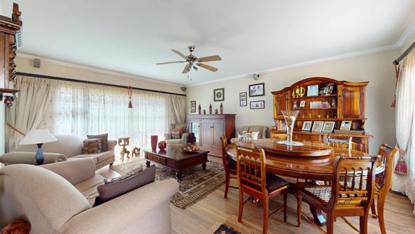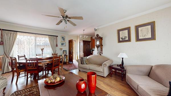 The heart of the home is its inviting living areas. The lounge and dining area are elegantly finished with laminated flooring, providing a warm and stylish ambiance. Step into the enclosed sunroom, a versatile space perfect for relaxing, entertaining, or hosting a family braai.