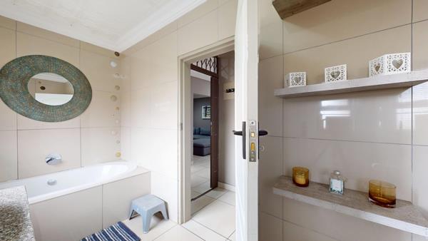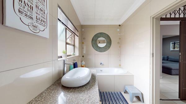3 Spacious Bedrooms with built-in cupboards Master bedroom with en-suite: freestanding shower, bath, basin & toilet.