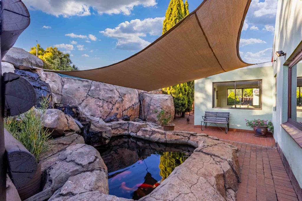 Outdoor Oasis: Step out to your private retreat, featuring a refreshing swimming pool and a charming koi pond, all set within a beautifully landscaped garden.