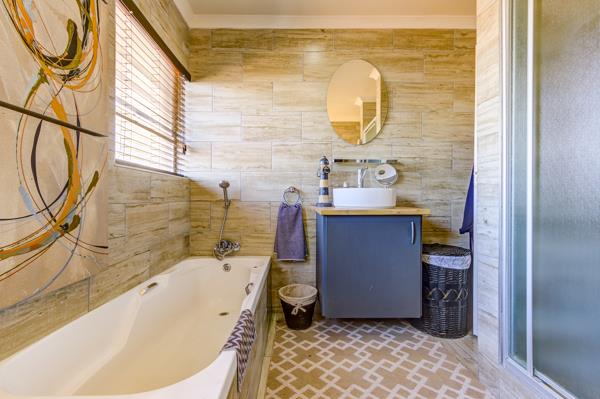 A striking bathroom offers stunning tiling throughout, a relaxing bathtub and a good sized separate shower.