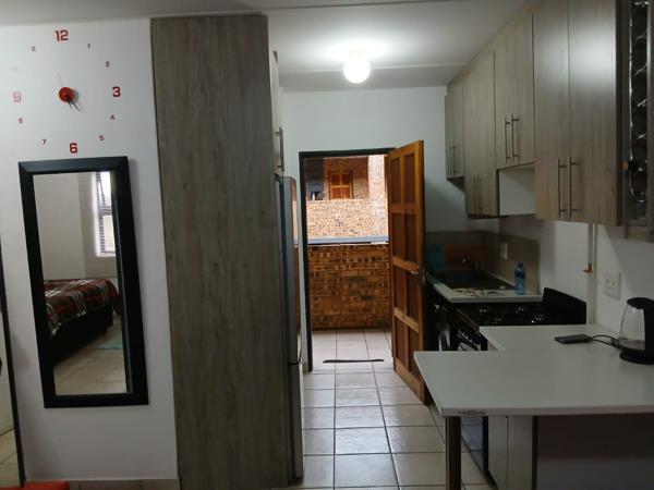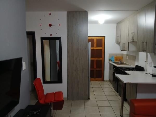 Discover this compact and functional 39 sqm apartment, ideally situated within a secure complex in Witfield, Boksburg. The open-plan design seamlessly integrates the modern kitchen and lounge area, featuring durable tiled flooring throughout for effortless maintenance. The kitchen is equipped with contemporary cabinetry, a gas stove, and an integrated breakfast bar, perfect for casual dining and efficient use of space.