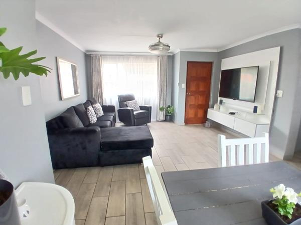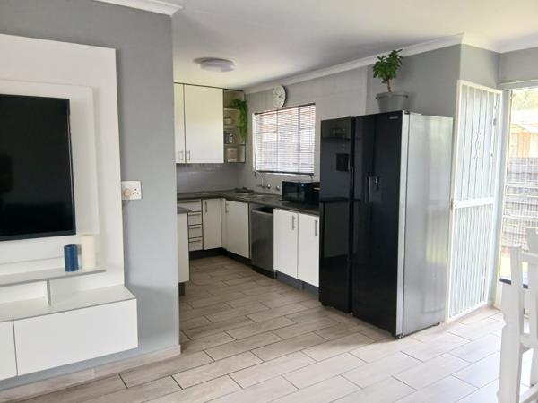 Step into modern living with this inviting 3-bedroom unit located in a secure complex in Witfield, Boksburg. The open-plan design seamlessly connects the living, dining, and kitchen areas, creating a spacious and contemporary atmosphere. Featuring sleek wood-look tiled flooring and neutral grey walls, the interior offers a clean canvas for personal style. Large windows ensure ample natural light throughout the main living spaces, complemented by functional ceiling fans for comfort.