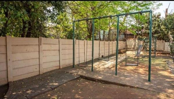 Small secure complex with a playground for kids.
