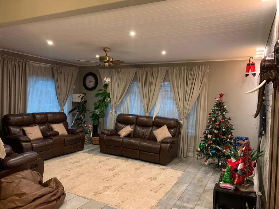 The modern kitchen is a standout feature, complete with a scullery, a 4-plate gas stove, and ample cupboard space, ideal for enthusiastic home chefs and busy family living.