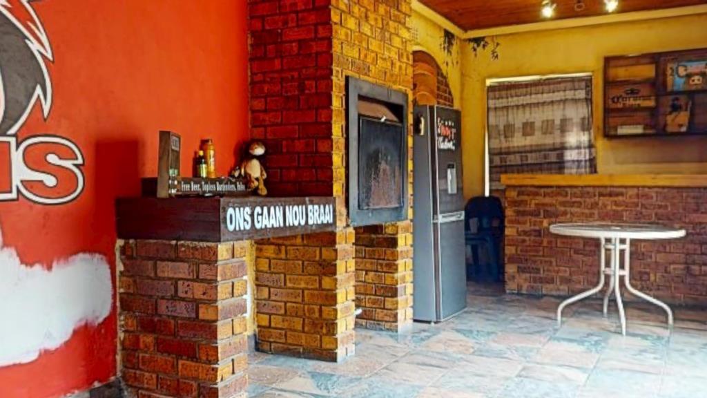Entertaining is a breeze with a bar area that includes a built-in bar counter and a braai, along with two guest bathrooms equipped with wash basins for convenience. The property also includes a swimming pool that requires some maintenance, as well as a beautifully designed built-in braai area in the backyard.
