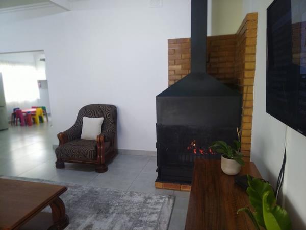 A gorgeous garden and a well-designed irrigation system surround the spacious, tidy, and airy yard that greets you as soon as you walk through the gate. Upon entering the property, you are greeted by a charming scullery that leads to an appealing open-concept kitchen, dining area, and lounge. The kitchen is fitted with a lovely kitchen unit with an electricity and gas stove, the sitting room features a large fireplace that provides warmth throughout the whole space, and it connects to a comfortable balcony that is well guarded with a security gate.