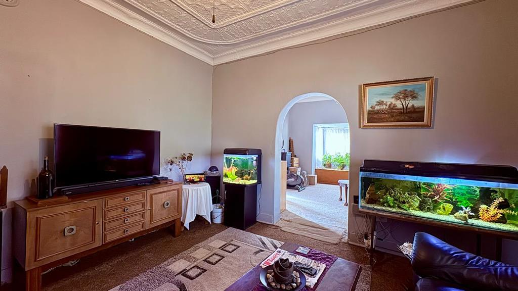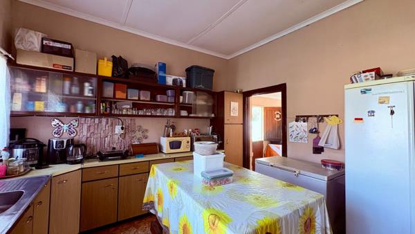 This spacious property offers three generously sized bedrooms, each with built-in cupboards, and a well-appointed full bathroom. The kitchen, complete with a separate scullery, is perfect for preparing meals with ease.