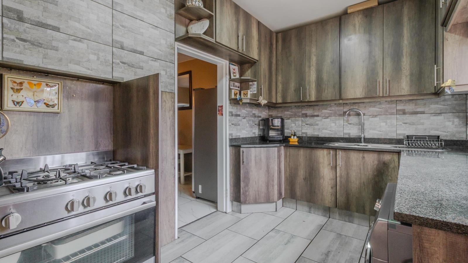 The kitchen is a standout feature, completely renovated and modernised, fitted with granite countertops, a gas stove and generous cupboard space, making excellent use of the available area.