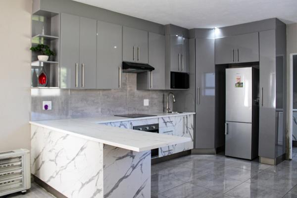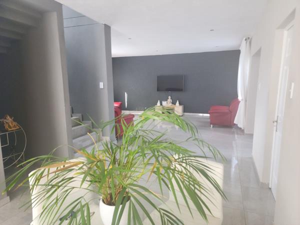 Scullery, vast work tops and built-in cupboards, guest toilet, full tiled.