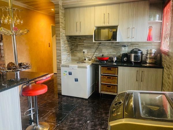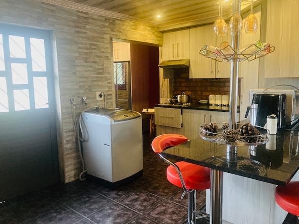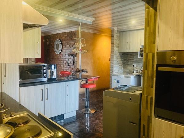 This stunning 4 bedroom home located in the sought after Brakpan suburb is a must see. It features a spacious main bedroom with an en-suite bathroom and a separate bathroom. The open living area is bright and spacious flowing into the newly designed kitchen which has plenty of storage, built in hob and oven and room for a top blender machine.