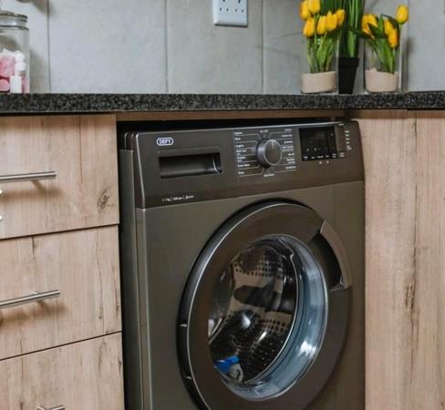 Black granite countertops, modern 4-plate gas stove andamp energy-saving gas geyser