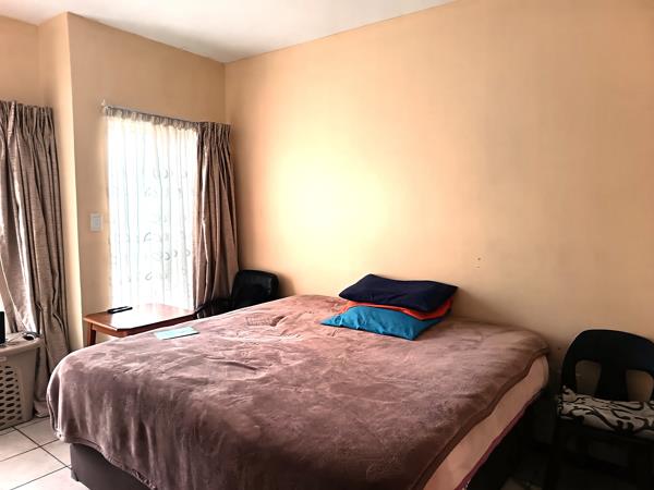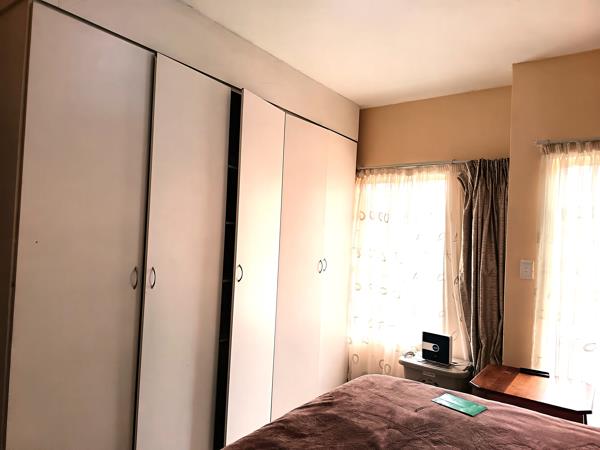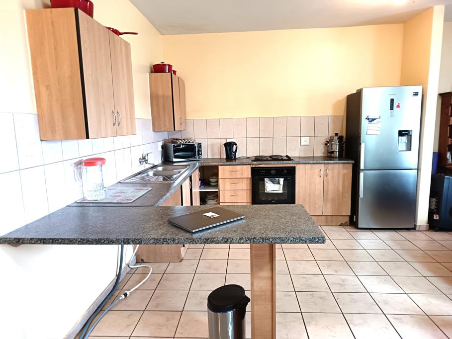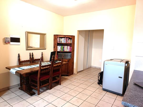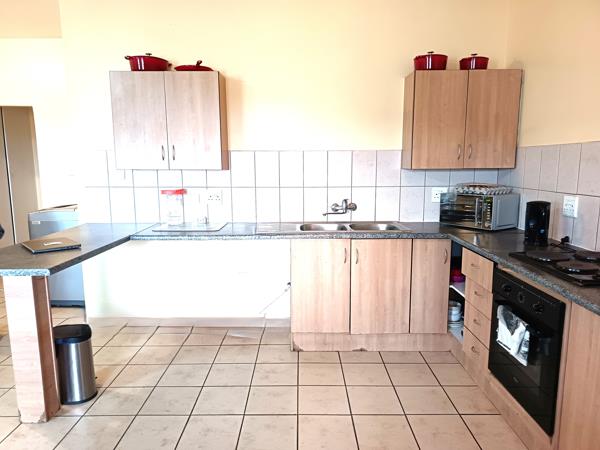 The open-plan living area seamlessly connects the lounge and dining room to a modern kitchen, fitted with oak-finished melamine cupboards, a breakfast bar, electric hob, undercounter oven, and plumbing for a washing machine. There''s also room for your fridge. The living area opens onto a private balcony that overlooks the complex and childrens play area perfect for relaxing.