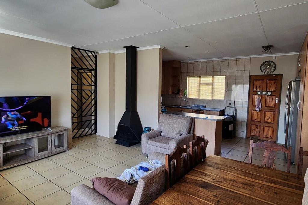 Lounge has a fireplace and is very cozy and connected to the dining room. Leading out the sliding doors is a covered patio with a built-in braai.